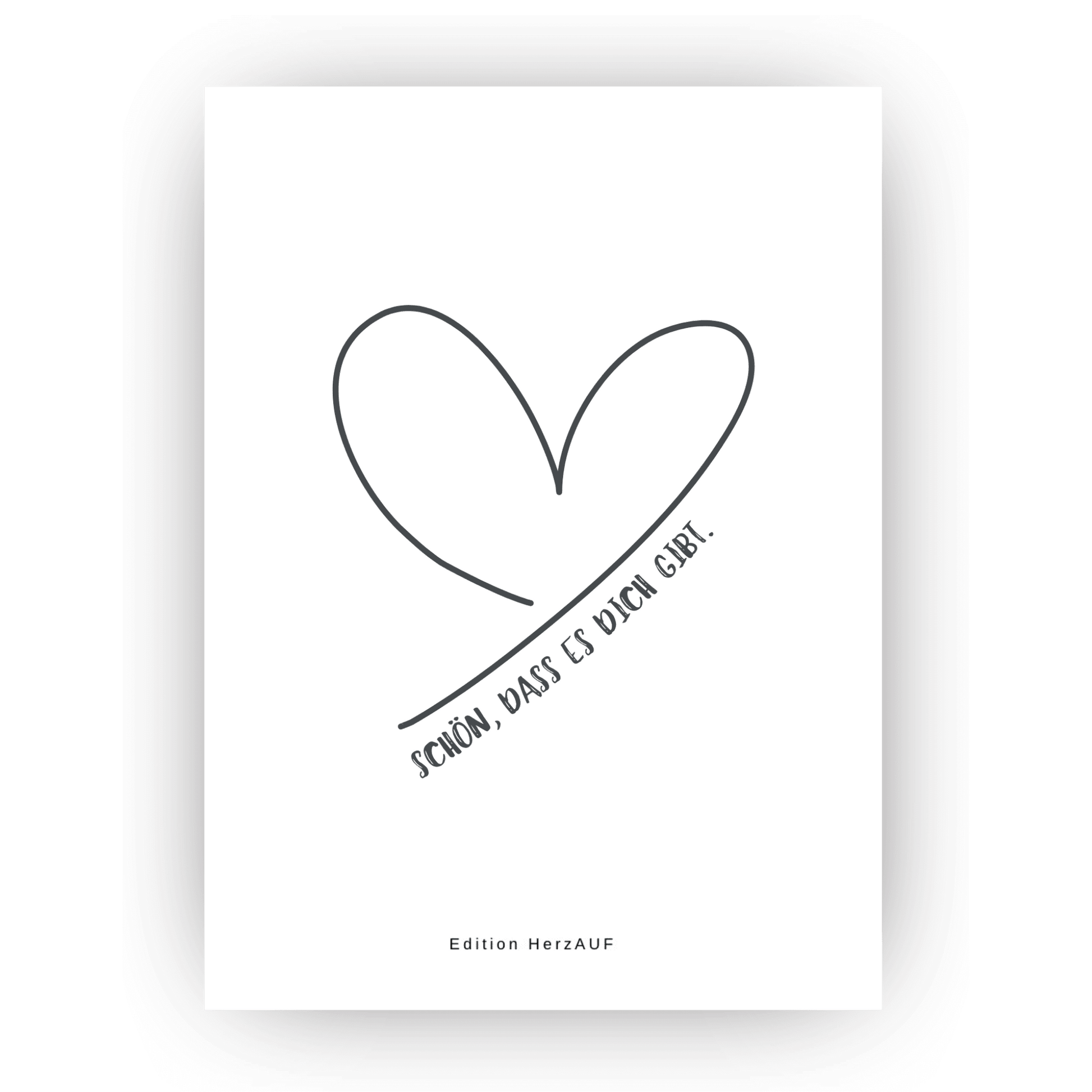 Die Grußkarte "Schön, dass es dich gibt" ist eine liebevoll gestaltete Karten für deinen Lieblingsmenschen in schlichtem Design. Der Hintergrund ist cremefarben und der Schriftzug in schwarz stellt die starke Botschaft dezent in den Mittelpunkt.