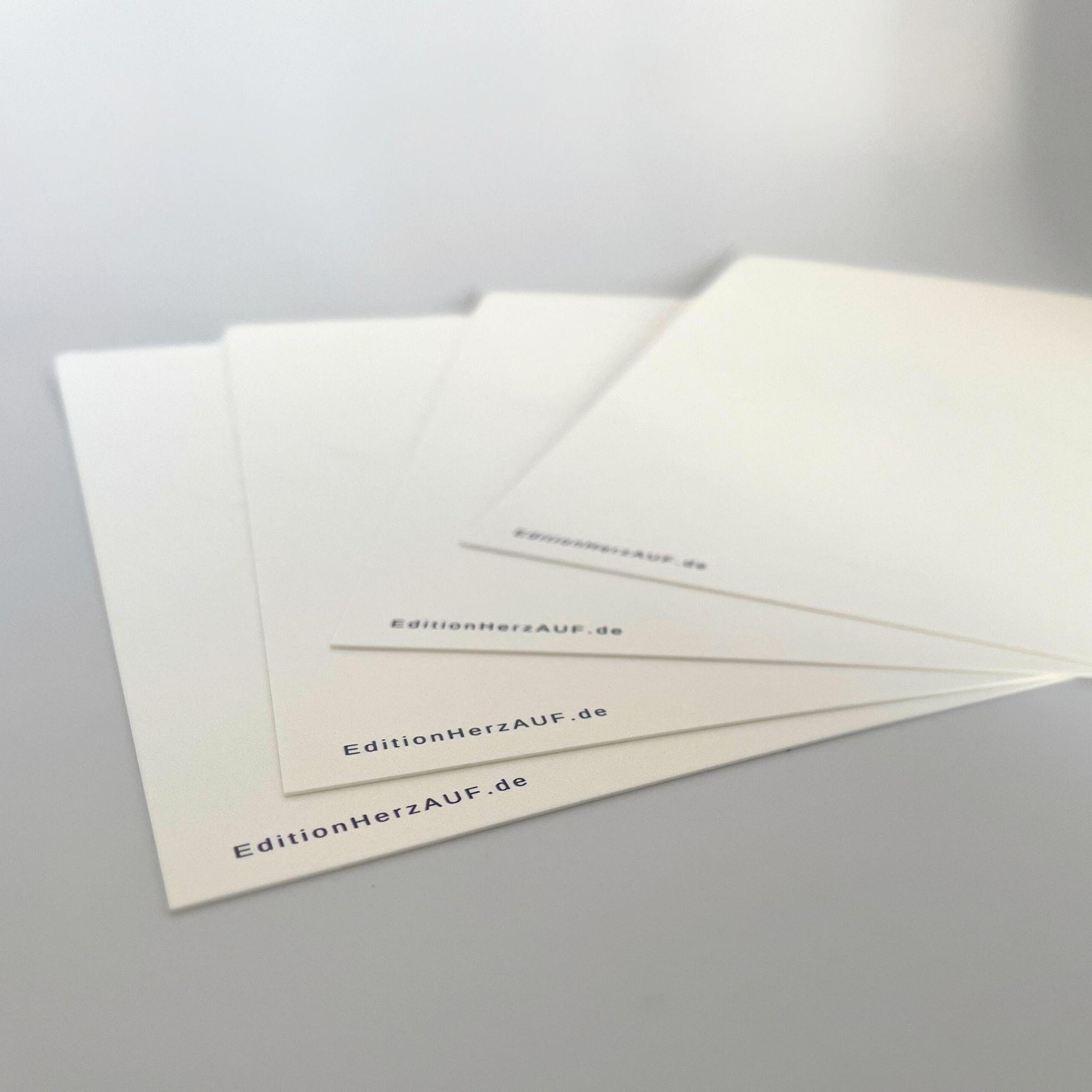 Unsere Spruchkarten haben die Größe DIN A6 (10,5 cm x 14,8 cm) und bieten ausreichend Platz für deine persönliche Nachricht. Das Papier besteht aus hochwertigem Postkarten-Naturkarton mit einer Grammatur von 300g bei einer hohen Steifigkeit- die Karten sind also stabil und langlebig. Sie wurden klimaneutral in Deutschland gedruckt.