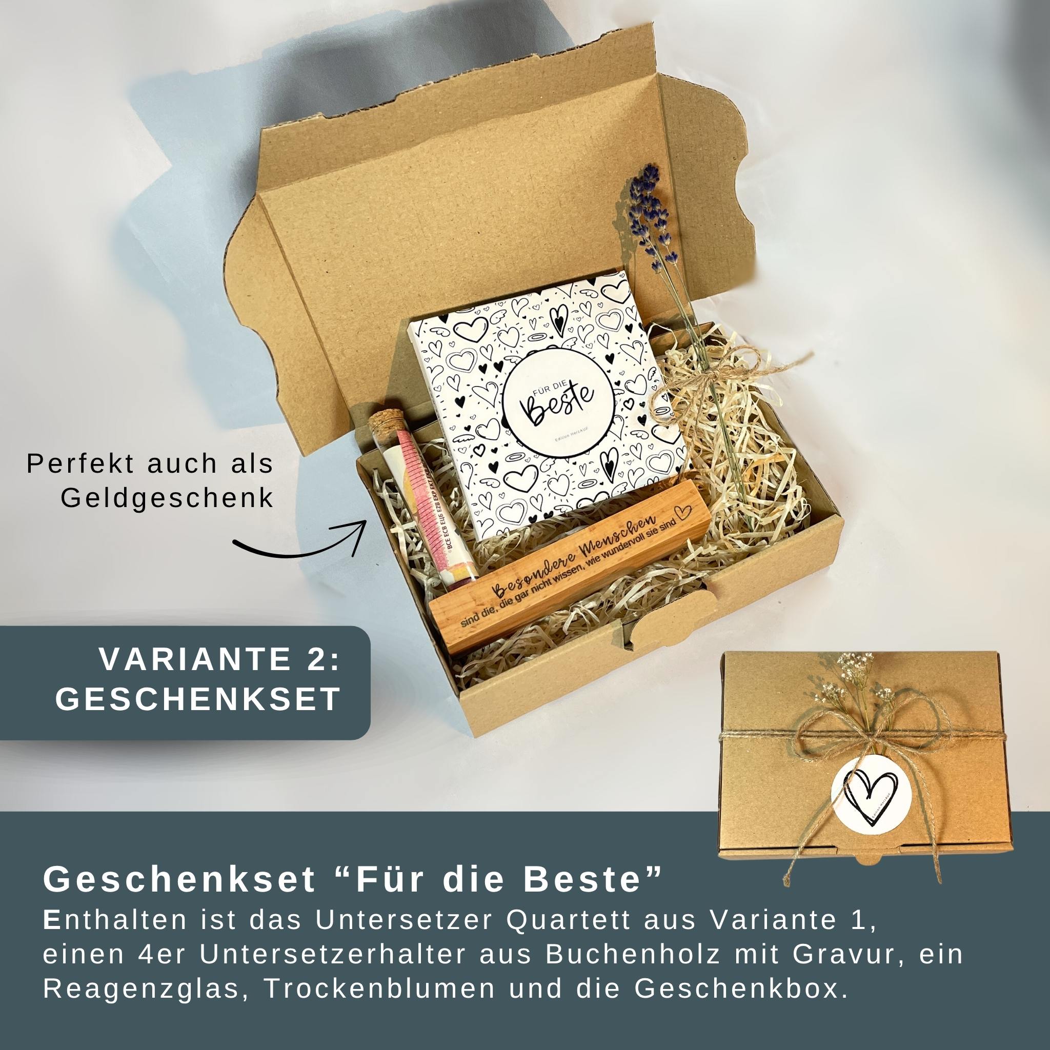 ✨ Geschenkset „Für die Beste“ – Untersetzer mit Halter & Geschenkbox