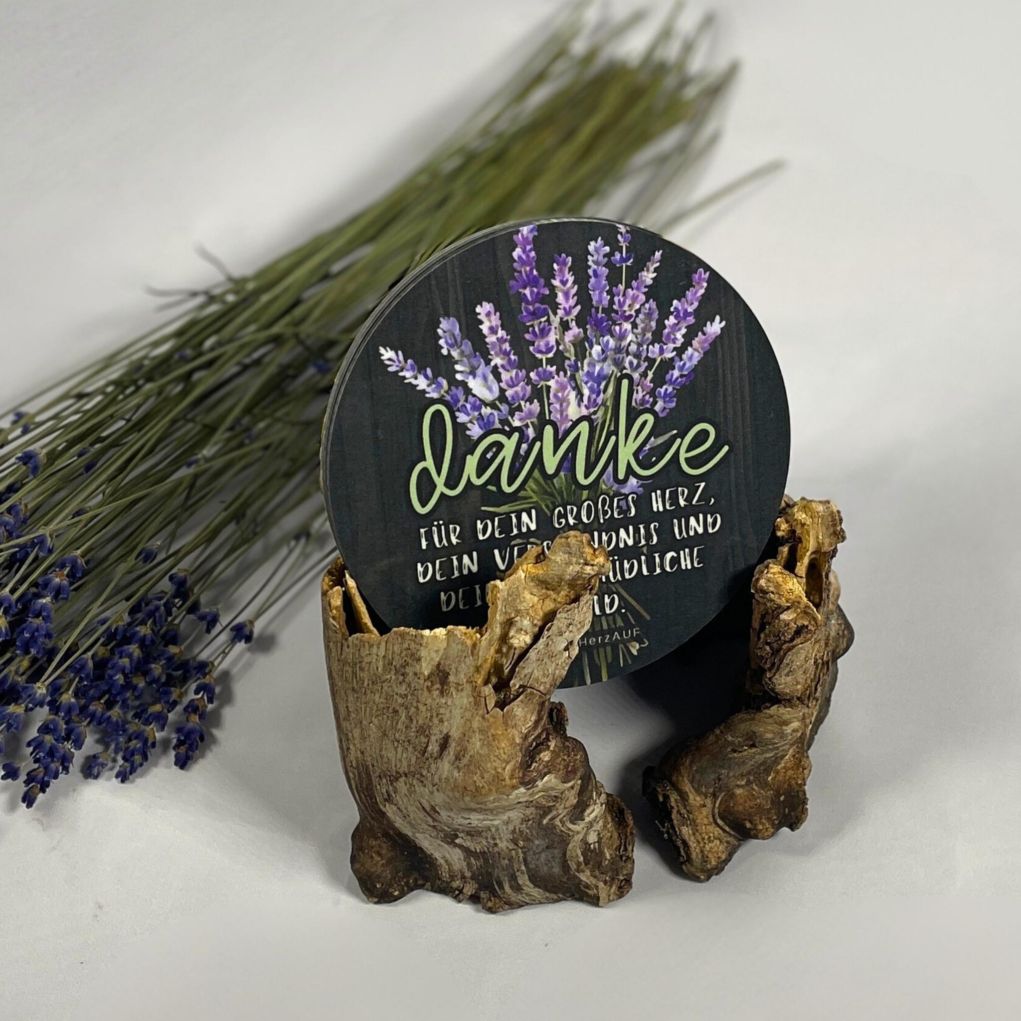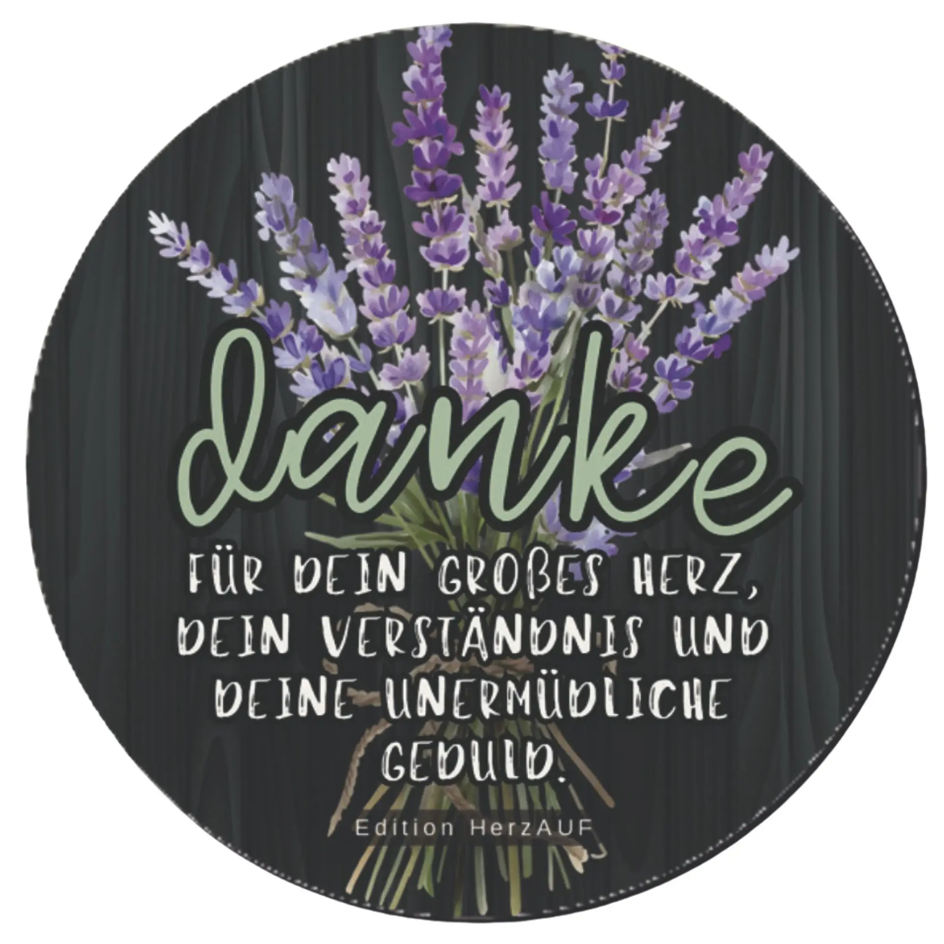 Dieser Untersetzer mit der Aufschrift „Danke für dein großes Herz, dein Verständnis & deine unermüdliche Geduld“ ist ein liebevolles Dankeschön.