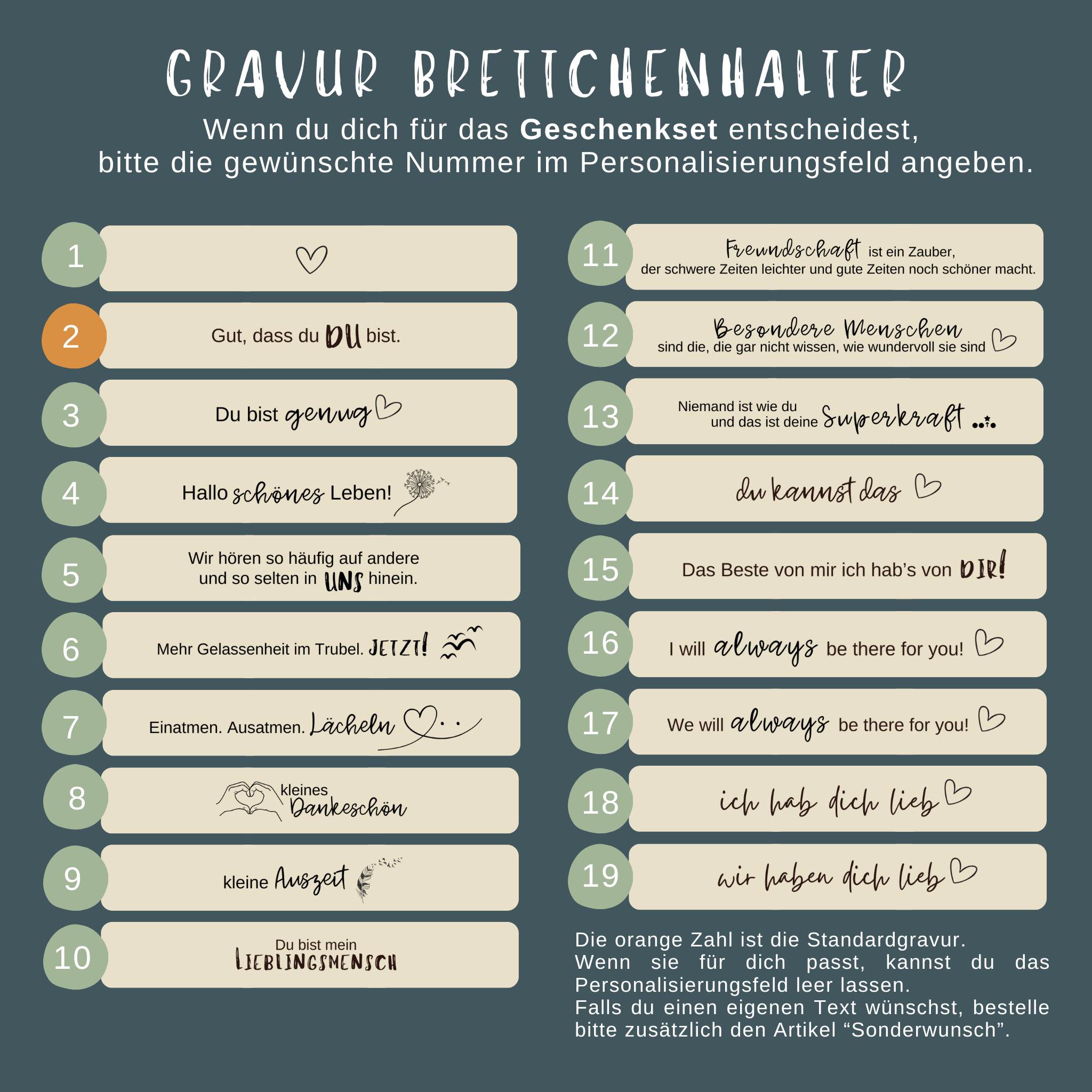 “Richtig tolle Brettchen! Ich habe nicht das erste und bestimmt auch nicht das letzte mal hier gekauft ;) Die Verarbeitung ist toll und ich liebe die positiven und unterstützenden Sprüche.”