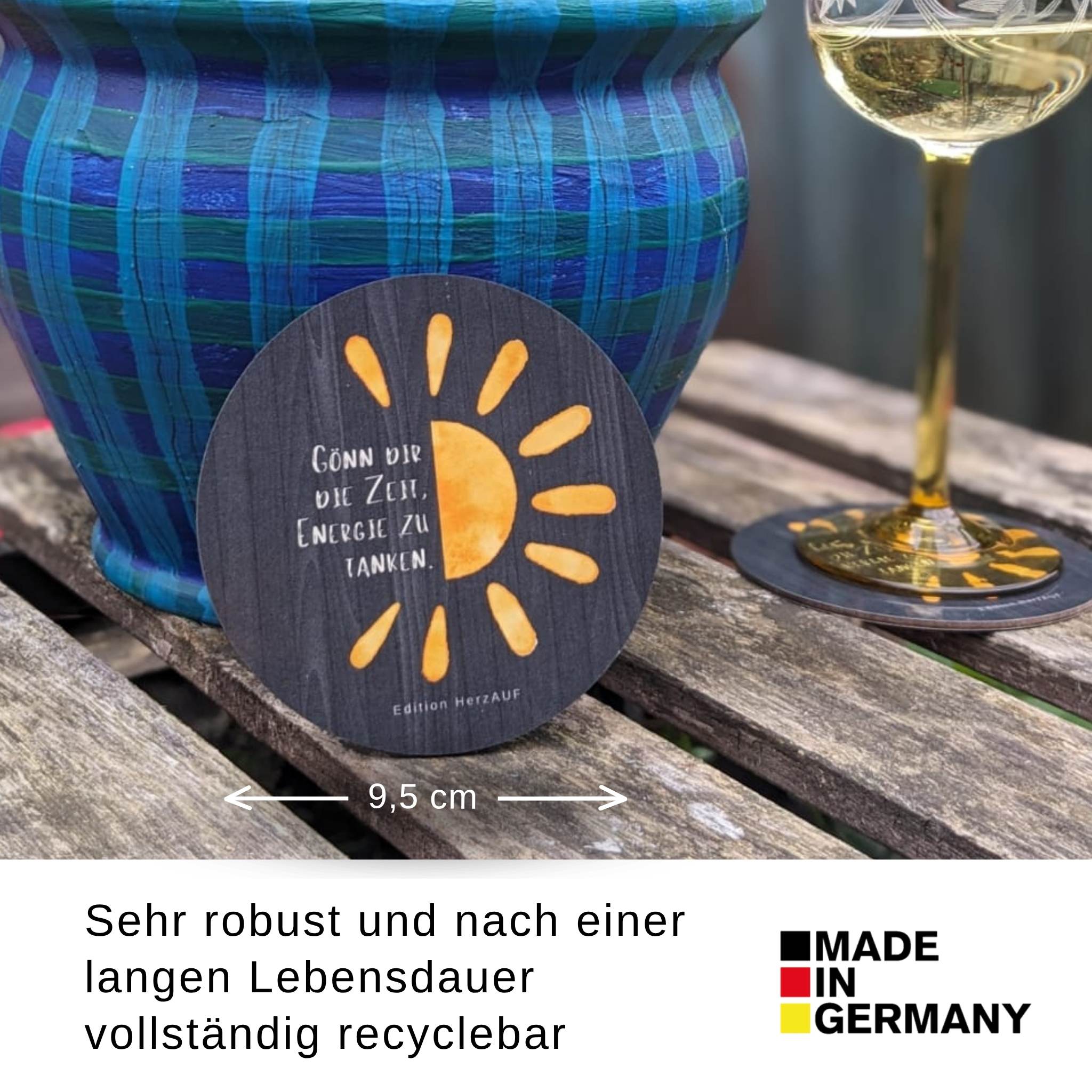 Unsere Frühstücksbrettchen und Getränkeuntersetzer bestehen aus hochwertigem HPL (Hochdrucklaminat) mit einer Schicht Kunstharz. Dadurch sind sie besonders robust, langlebig, lebensmittelecht und hitzebeständig – ideal für den täglichen Gebrauch.