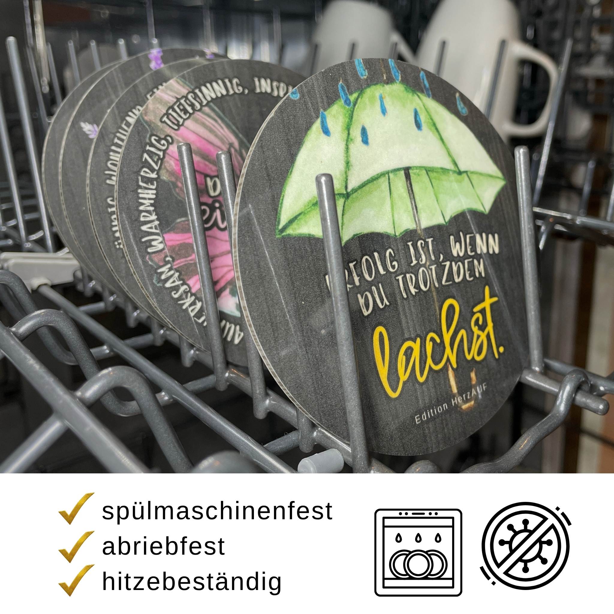 Die inspirierenden Botschaften auf Brettchen und Untersetzer motivieren, den Moment zu genießen und mit einem Lächeln durchs Leben zu gehen.