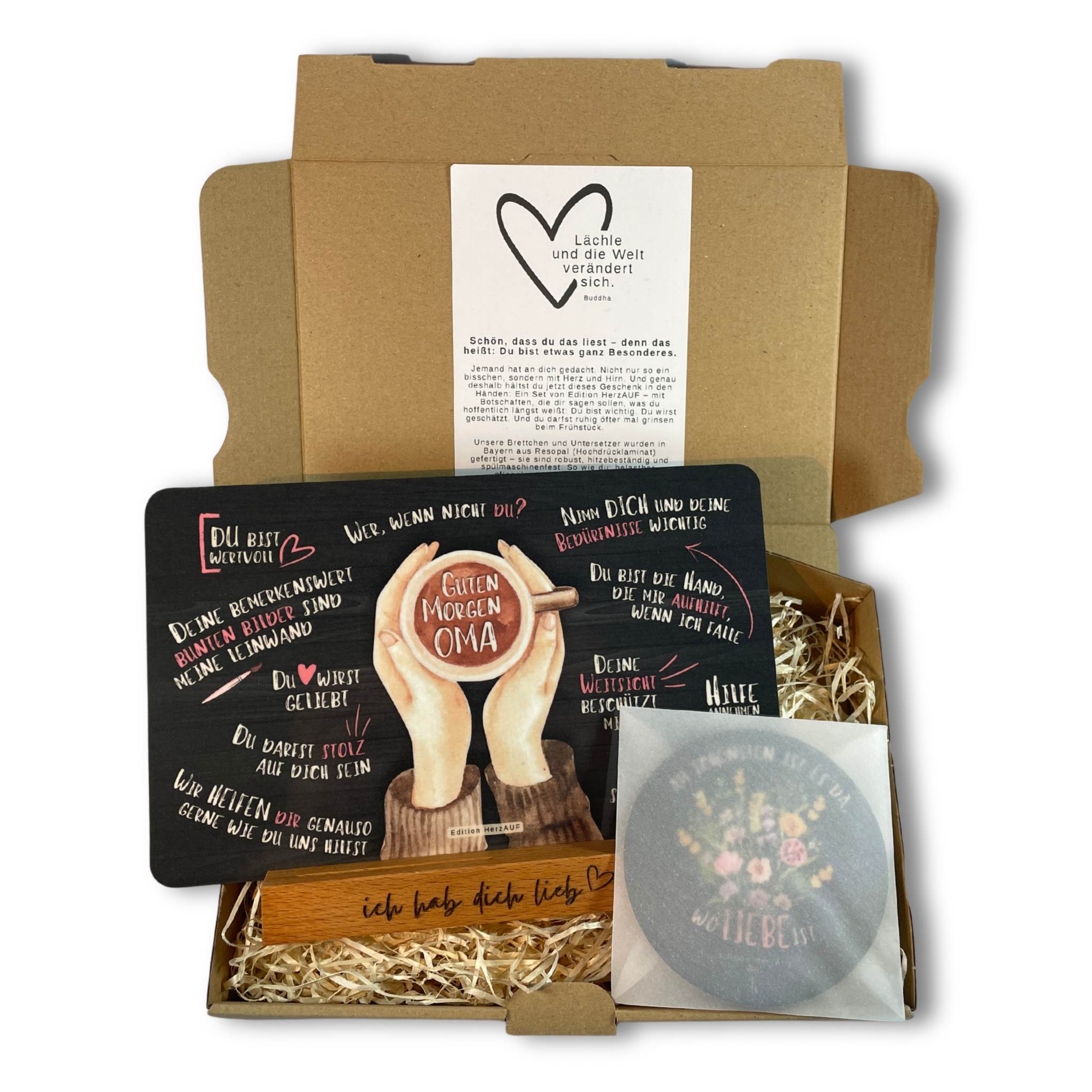 Dieses Geschenkset für Oma vereint Stil, Nachhaltigkeit und Emotion – ein praktisches und gleichzeitig herzergreifendes Präsent für Großmütter. Es zeigt Wertschätzung, zaubert ein Lächeln ins Gesicht und erinnert jeden Morgen daran, wie sehr sie geliebt wird. ✨❤️