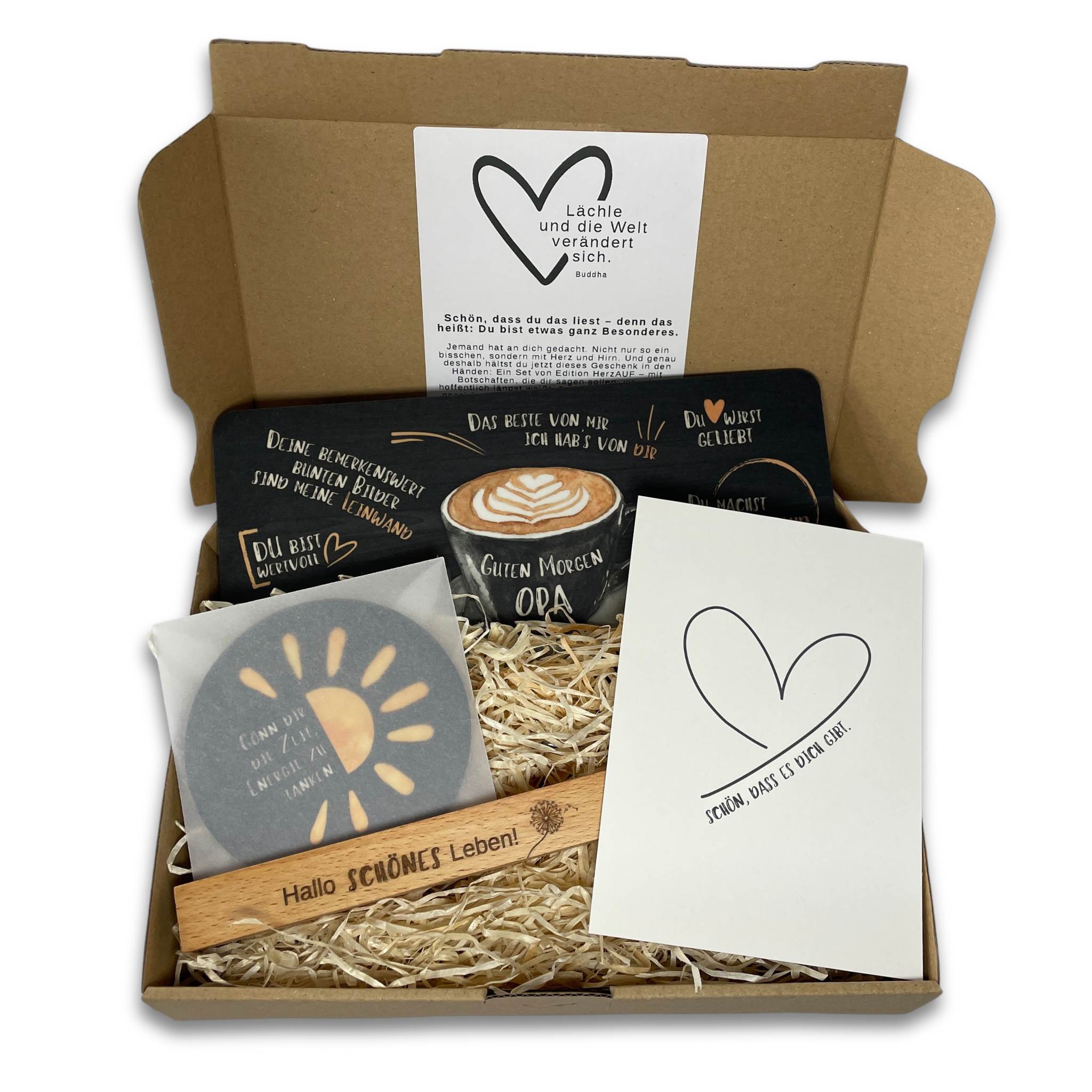 Während Blumen welken und Schokolade schnell verschwindet, begleitet dieses Geschenkset für Opa deinen Großvater Tag für Tag. Es ist ein Symbol für Liebe, Dankbarkeit und Wertschätzung – und erinnert ihn jeden Morgen daran, wie wichtig er ist.