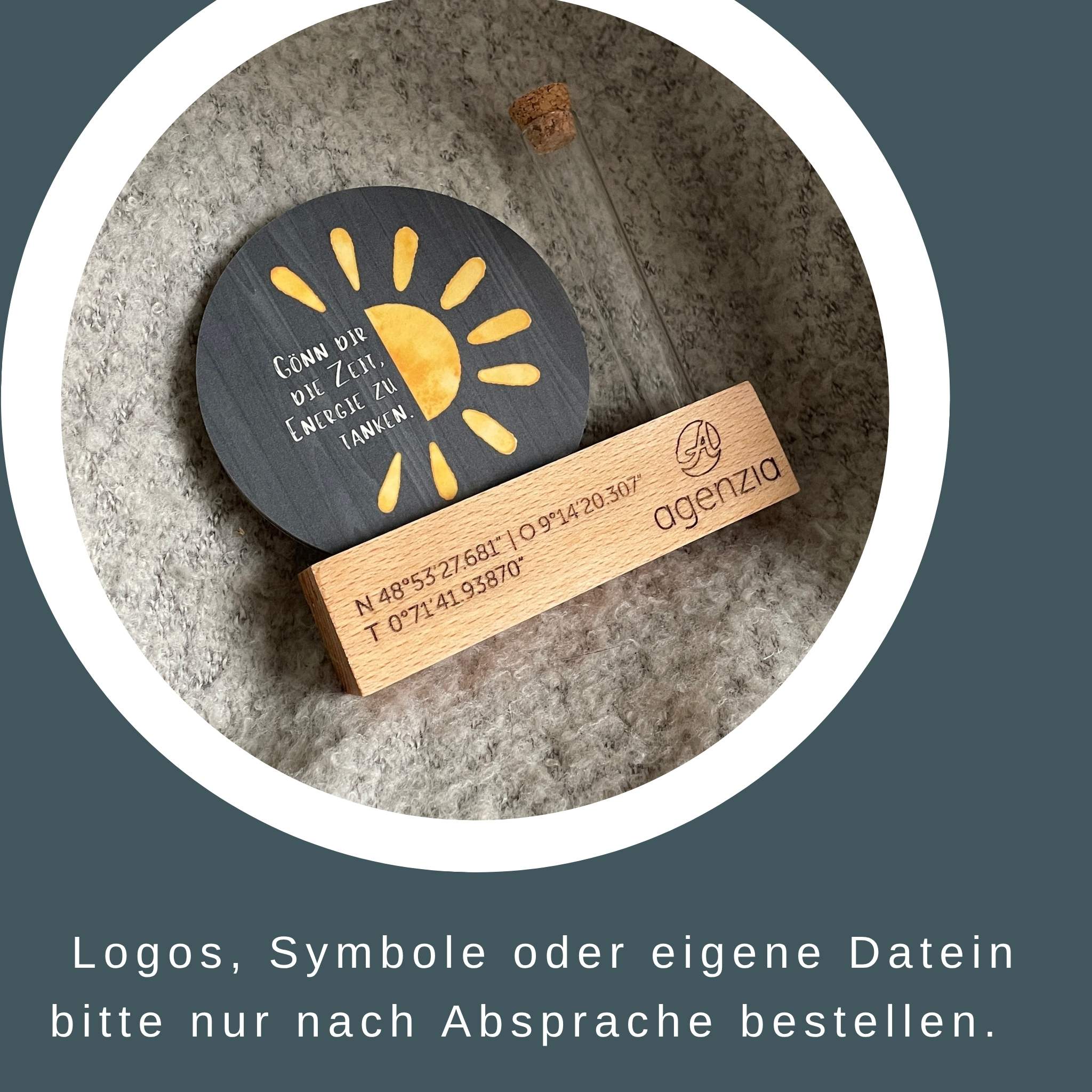 Der Artikel gilt nur für die Gravur auf unseren Holzhaltern und ist nur in Verbindung mit dem Kauf eines Geschenksets oder einzelnen Halters bestellbar. Symbole, weitere Schriftarten, eigene Motive oder größere Mengen kalkulieren wir anders. Schreib uns in dem Fall gerne an!