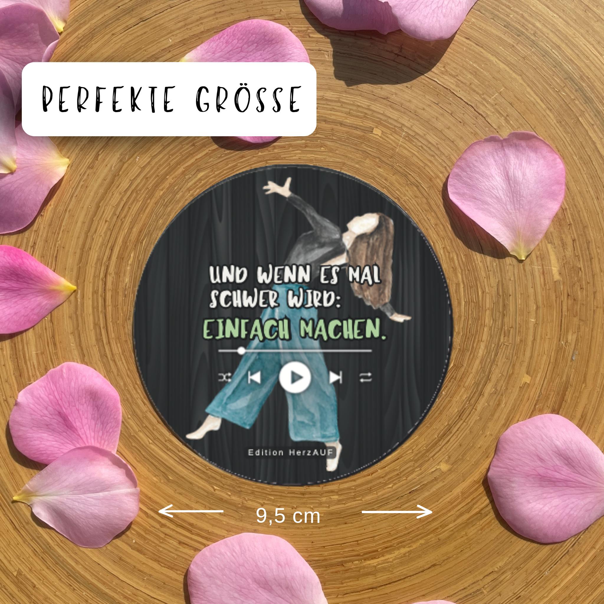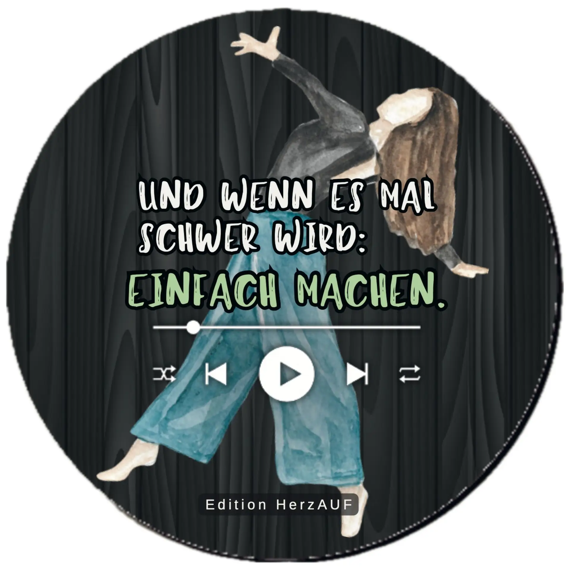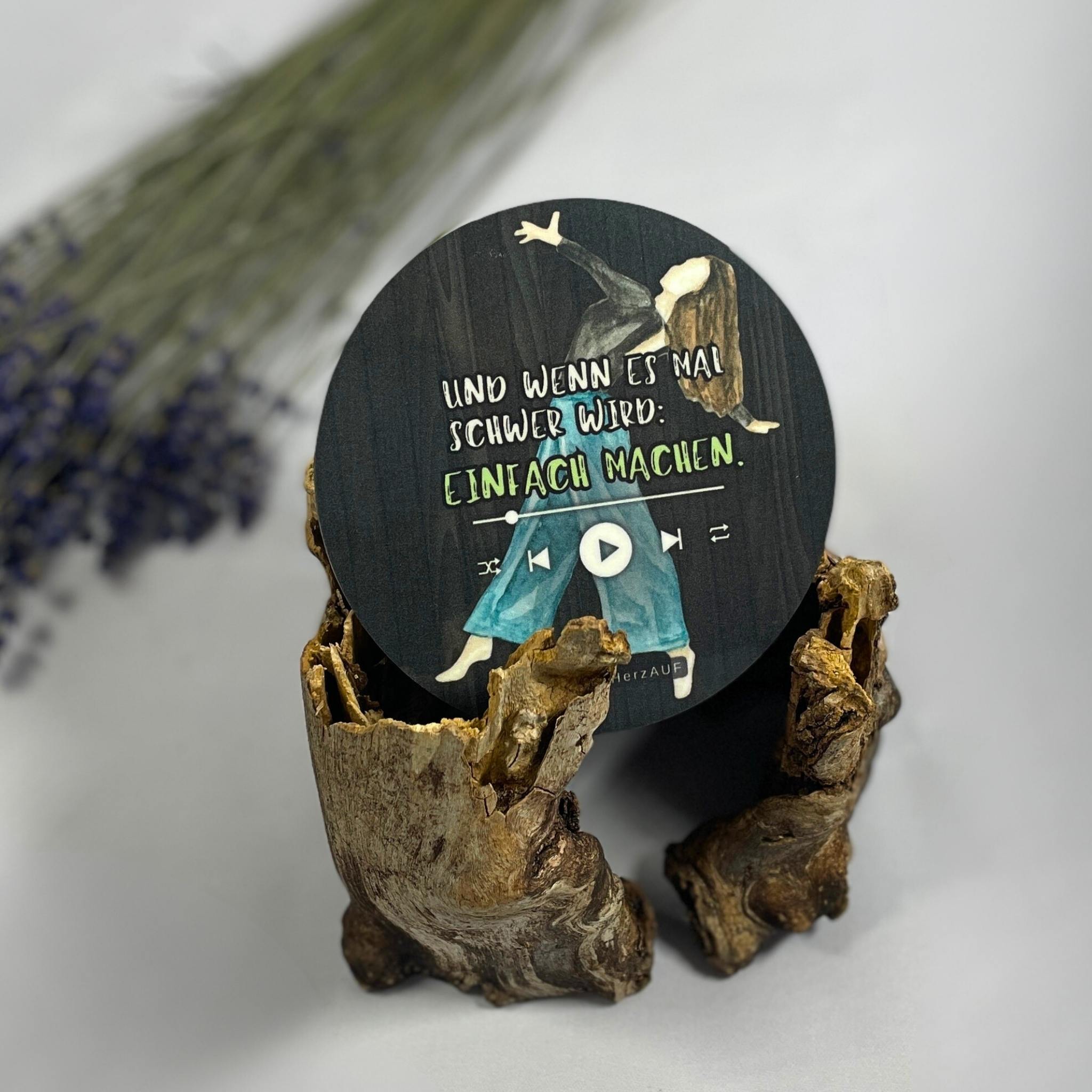 „Und wenn es mal schwer wird – einfach machen.“ Dieser runde Getränkeuntersetzer (Durchmesser 9,5 cm) ist mehr als nur praktisch – er ist ein Mutmacher im Alltag.