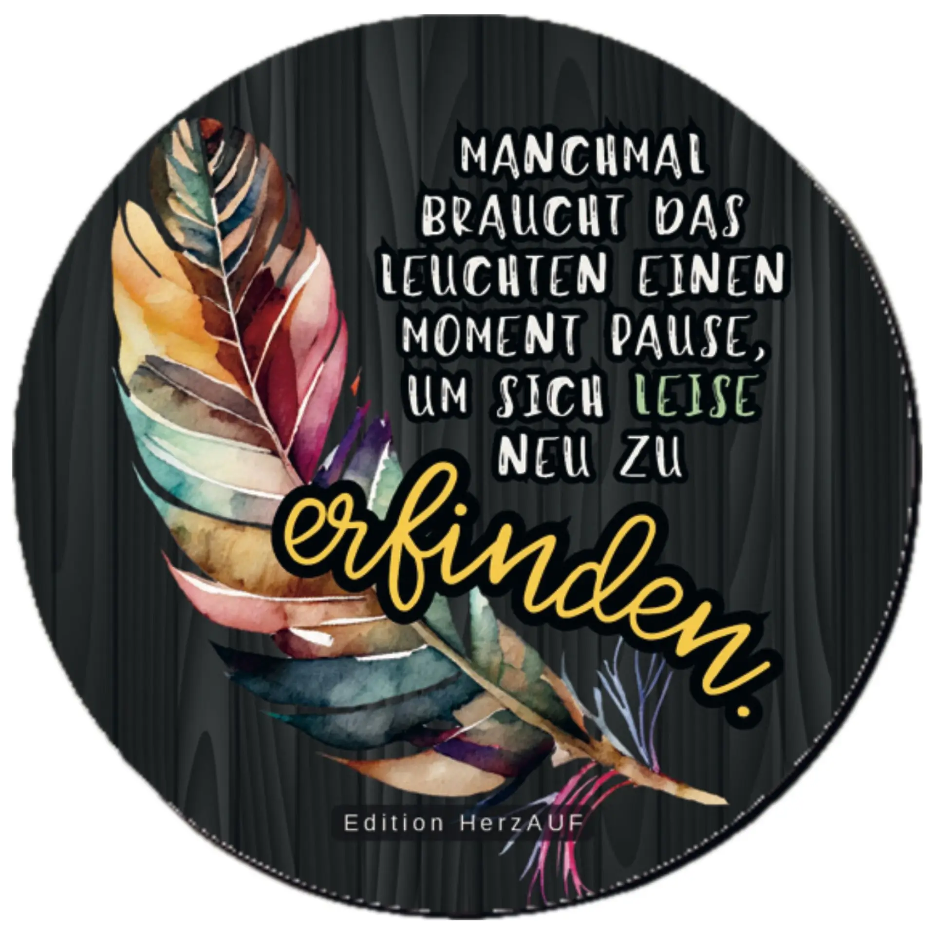 Mit der Botschaft „Manchmal braucht das Leuchten eine Pause“ schenkt dieser Untersetzer Inspiration und Mut.
